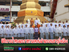 นายกโชคชัยนำคณะผู้บริหาร-ข้าราชการและพนักงานร่วมพิธีห่มผ้าพระธาตุวัดในเขตเทศบาล
