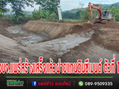 อบจ.แพร่ ร่วมกับบริษัทตึกเหลือง ดำเนินการก่อสร้างฝายแกนดินซีเมนต์ ตัวที่ 1เสร็จแล้วทันใจใช้ได้ทันที