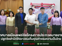 เทศบาลเมืองแพร่ จัดโครงการประกวดมารยาทไทยโรงเรียนในสังกัดเทศบาลเมืองแพร่ ปลูกจิตสำนึกให้เยาวชนเห็นคุณค่าของความเป็นไทย