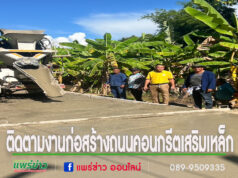 อบต.เวียงทอง ลงพื้นที่ติดตามงานก่อสร้างถนนคอนกรีตเสริมเหล็ก หมู่ที่ 11