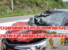 (มีคลิป)สาวอุตรดิตถ์ขับเก๋งมาแพร่ดวงซวยล้อรถพ่วงหลุดโดนหน้ารถอย่างจัง