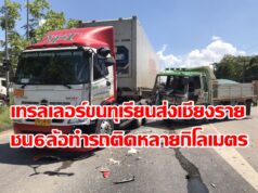 (มีคลิป)เทรลเลอร์ขนทุเรียนส่งเชียงรายชน 6 ล้อทำรถติดหลายกิโลเมตร