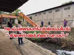 เทศบาลเมืองแพร่ลอกรื้อกำจัดวัชพืชเนื่องในวัน“ สัปดาห์กำจัดสิ่งกีดขวางทางน้ำ”