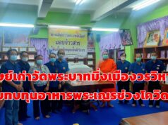 สมาคมศิษย์เก่าวัดพระบาทมิ่งเมืองวรวิหาร ถวายปัจจัยสบทบทุนอาหารพระเณรจากภัยโควิด-19