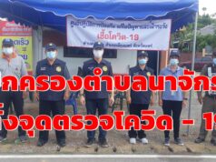 ฝ่ายปกครองตำบลนาจักรตั้งจุดตรวจโควิด 19 ผู้ที่สัญจรเข้าออกหมู่บ้านต้องสวมหน้ากากอนามัย