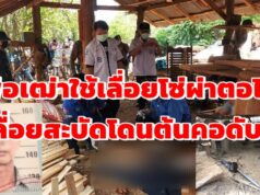 พ่อเฒ่าใช้เลื่อยโซ่ดัดแปลงผ่าตอไม้สักเลื่อยสะบัดโดนต้นคอดับ