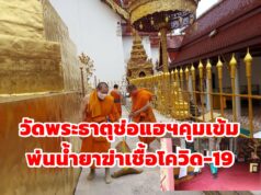 วัดพระธาตุช่อแฮฯคุมเข้มวัด ทำความสะอาดพ่นน้ำยาฆ่าเชื้อโควิด-19