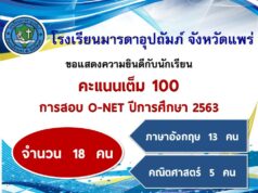 นักเรียนชั้น ป.6 ร.ร.มารดาอุปถัมภ์สร้างชื่อให้จ.แพร่สอบO-NET ได้คะแนนเต็ม 100 คะแนน 18 คนมากสุดในจ.แพร่