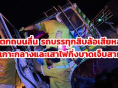 (มีคลิป)ฝนตกถนนลื่นบรรทุกสิบล้อเสียหลักชนเกาะกลางถนนสายเด่นชัย-ลำปางคนขับบาดเจ็บสาหัส